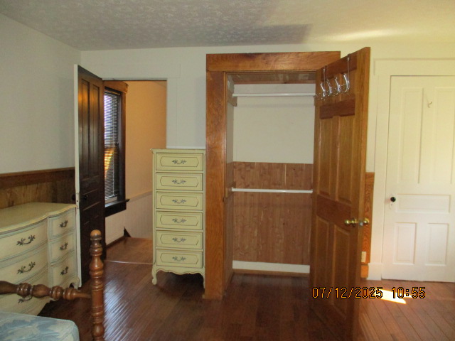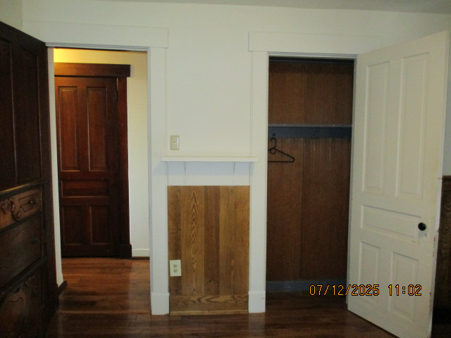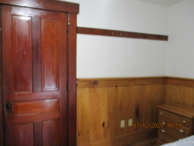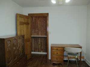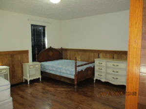 currently with full bed, and twin bed, oak wainscoting, Desk, Dressers, Closet