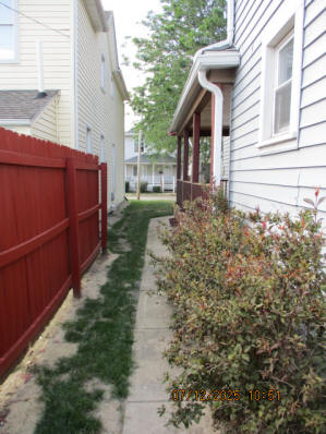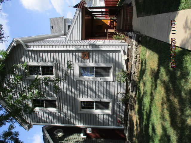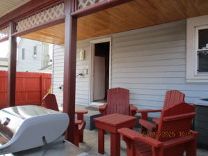 adirondack chair, stone flowerbed, side by side with our home at 25