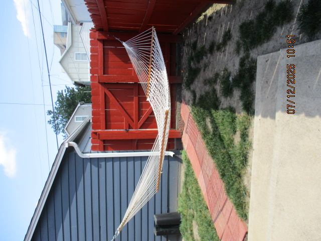 grill, custom built picnic table, hammock, and patio set. Custom built