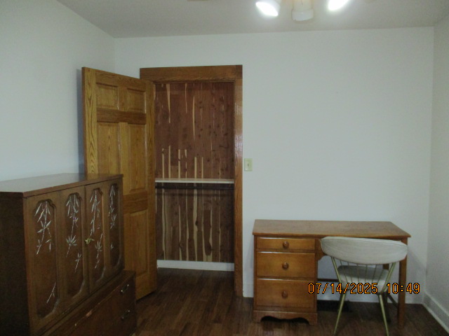 currently with two Full Beds, oak wainscoting, Desks, Dressers, and custom built oak closet with cedar