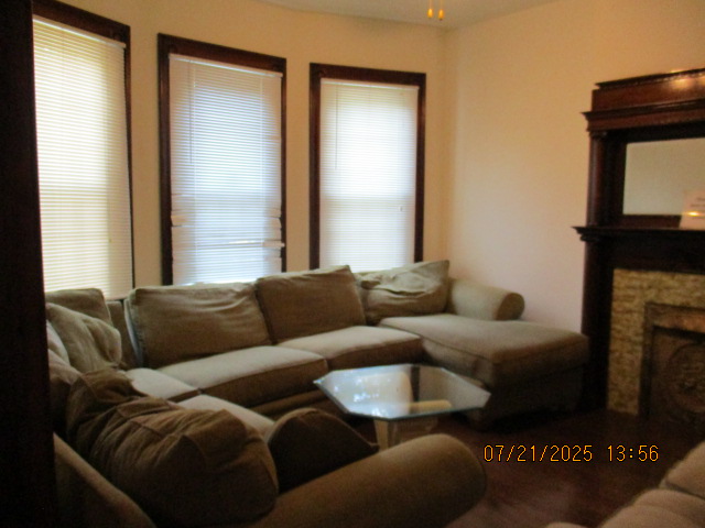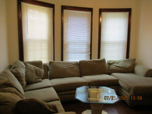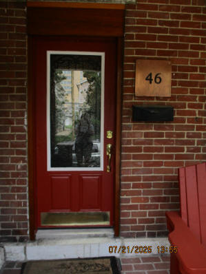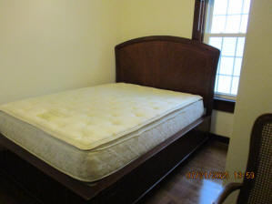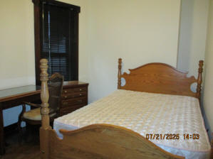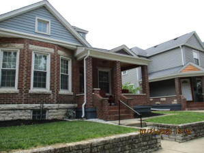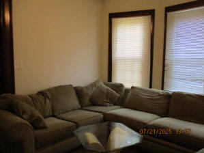 46 Frank Street This gorgeous brick home features: solid oak wood flooring downstairs in living areas and bedrooms, two downstairs bedrooms both with cedar lined closets, one upstairs bedroom with oak wainscoting, cedar lined closet and two other closets! Kitchen with hickory cabinets, oak wainscoting, slate tile flooring, dishwasher, microwave and platinum series commercial grade washer and dryer. Bathroom features Italian marble tile and vanity with two sinks. Central heat and air conditioning, steel entry doors. Front entrance door is trimmed in black walnut. This house also has a living room and a parlor with a beautiful fireplace with a tiger oak mantle, leather living room furniture, and wall mounted television. Privacy fence in backyard, picnic bench, gas grill and hammock. Best of all, you are a block and a half from campus and all the fine restaurants!! **As with all our properties, maintenance is included.** (Click on any of the pictures below to see an enlarged view)** Front views of house with front porch with oak ceiling and stone retaining wall Parlor with solid oak wood flooring, fireplace with tiger oak mantle, ceiling fan, sectional sofa, wall mounted television