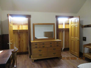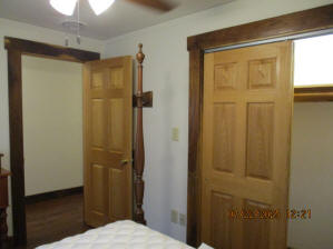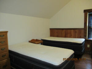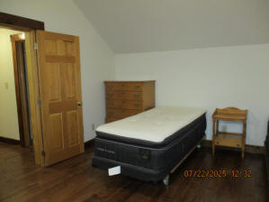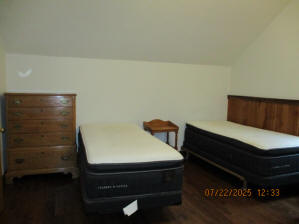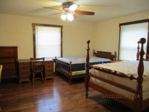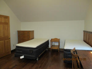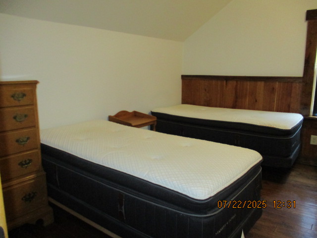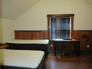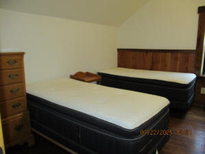 Third upstairs back bedroom with two twin beds, two closets, solid hickory wood flooring