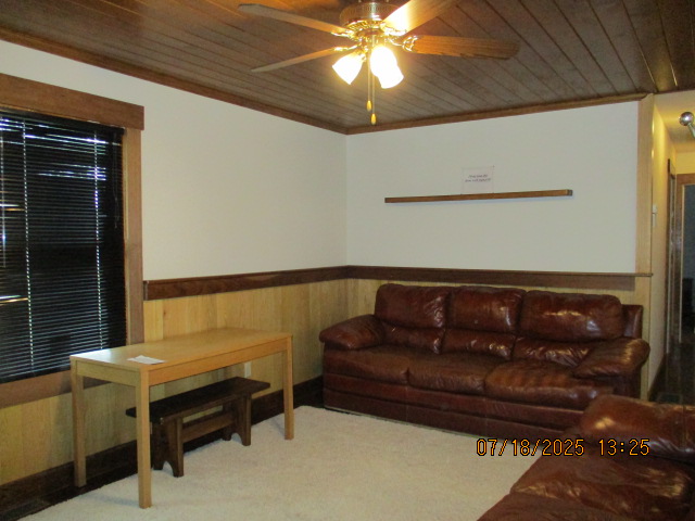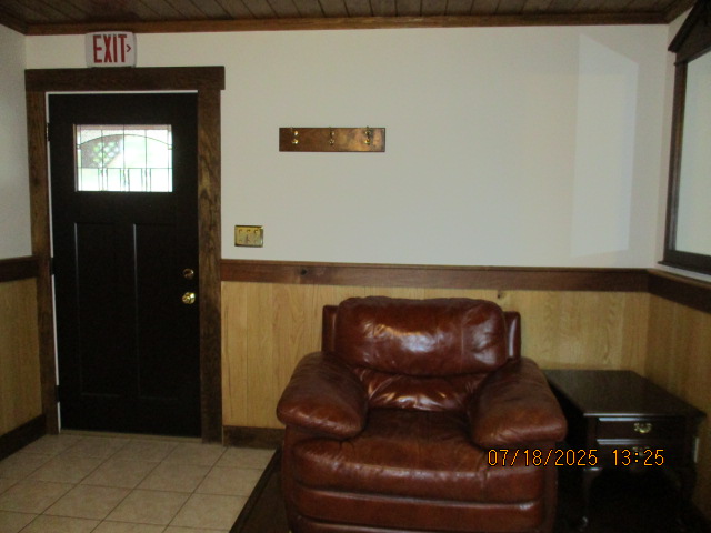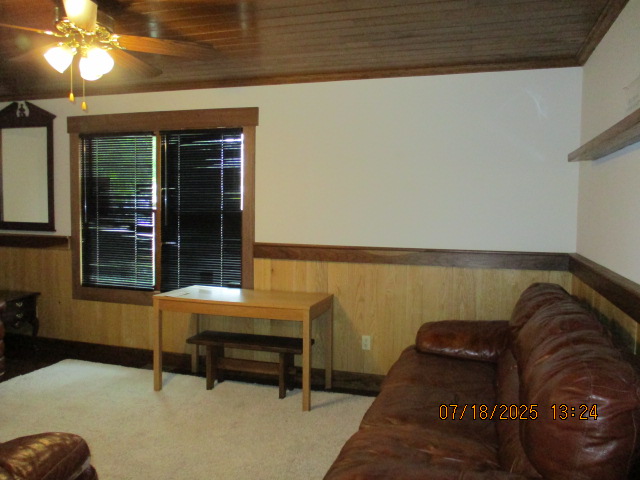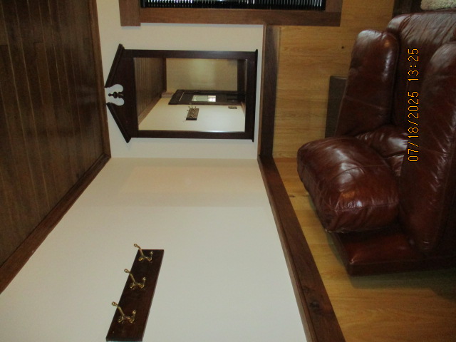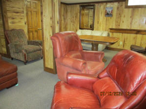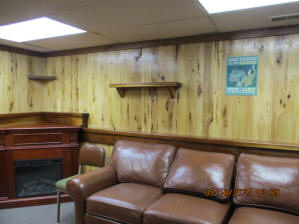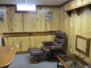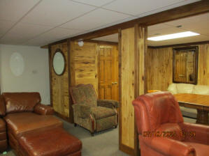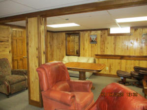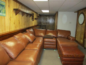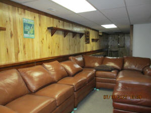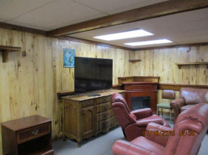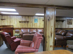 Absolutely beautiful Basement Recreation Room with solid hickory walls with black walnut accents, with gas Fireplace , beautiful large leather sectional sofa, leather furniture, table and chairs, bedroom area with full wood bed, security camera monitoring system, dresser, desks currently in main basement area, large cedar lined closet in main basement area. This page was last updated 07/29/25 |