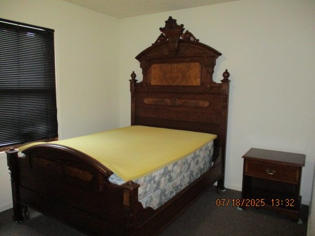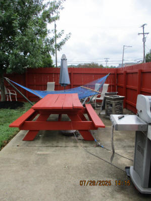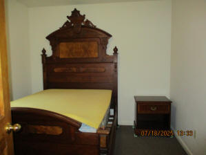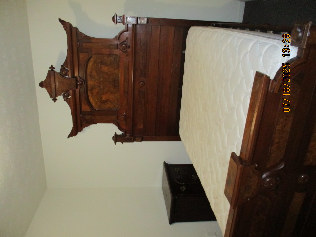 Privacy Fenced in Backyard with Basketball Court Outside Fence with Parking Pad, side yard, Picnic Table in Backyard, propane fire pit, hammock in stand, gas grill, security lighting Living Room with solid oak wood flooring, Premium Leather Living Room Set, oak wainscoting with black walnut trim, hallway leading to bedrooms, hallway closet First main floor Bedroom currently with beautiful Victorian style Full Bed, Desk, Nightstand, and cedar lined Closet